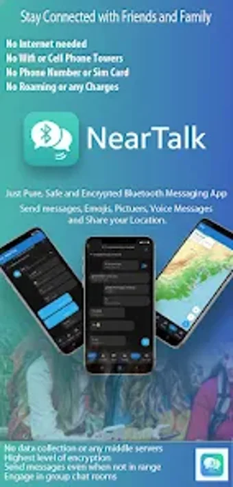 يدعم التطبيق الرسائل الفردية والدردشات الجماعية مع ميزات مثل التسليم بالتخزين والإرسال للمستلمين غير المتصلين والقدرة على إرسال الرسائل الصوتية والصور وعلامات المواقع. يعطي نير توك الأولوية لخصوصية المستخدم من خلال ضمان أن جميع الاتصالات مشفرة وتبقى على أجهزة المستخدمين دون أي جمع للبيانات أو تخزين سحابي. مع السيطرة الكاملة على الرؤية والاتصالات الموثوقة، يعد نير توك حلاً مثالياً للتواصل الآمن والفعال في مختلف المواقف الواقعية.